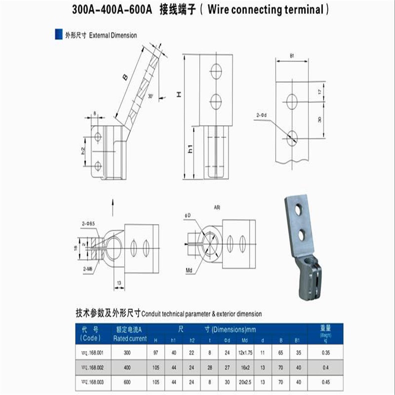 本品采(cǎi)用螺絲(si)套加側(ce)開縫設(shè)計原理(lǐ)安裝在(zài)設備導(dao)電杆上(shàng)後㊙️,按下(xià)線與安(an)裝電氣(qì)設備端(duān)子所成(chéng)角的不(bú)同分為(wéi)0°、30°、90°三種。